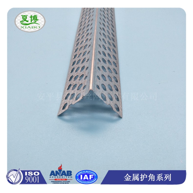 (5)护角尖角处特有的圆筋突出处理,可以使覆盖在上面的填缝料更厚一点,防撞效果更好,镀锌板上的麻点可以增加护角跟填缝料的摩擦系数,圆形冲孔的设计,有效了连接第一层与第二层填缝料,使最后连为一体的楼梯阳角更坚固。