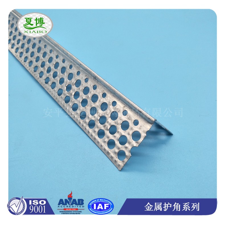 (3)楼梯护角网,通过圆孔方便打钉,且使得护角条与边角部位的石膏板或者其他粘结材料结合的更加牢固。