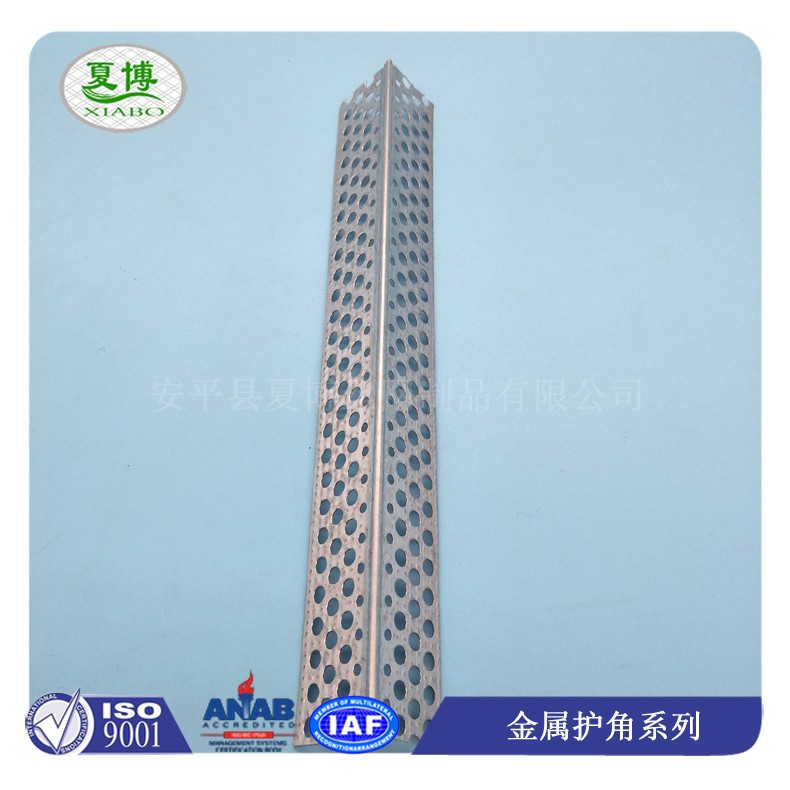 (3)楼梯护角网,通过圆孔方便打钉,且使得护角条与边角部位的石膏板或者其他粘结材料结合的更加牢固。